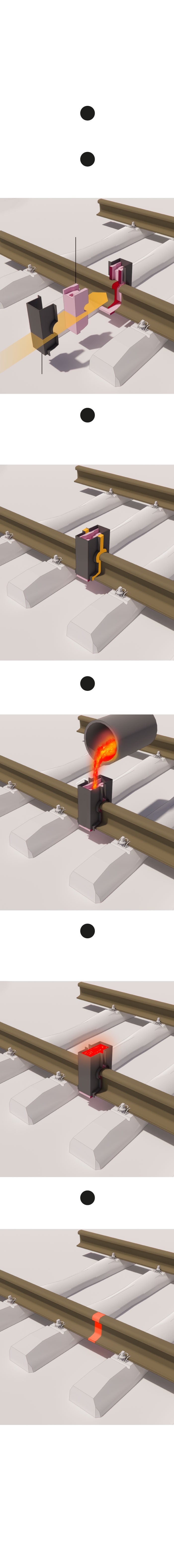 Hablando en plata, se trata de un proceso que se conoce como soldadura por termita. Siguiendo este método, primero se coloca entre los dos raíles un sistema de anclaje con unos moldes que se ajustan a la geometría del raíl y se sella con una pasta arenosa. También se coloca una protección para evitar que los raíles se dañen. Tras esto, se precalientan los extremos de los dos raíles con una llama hasta llegar a alrededor de los 900 grados.
