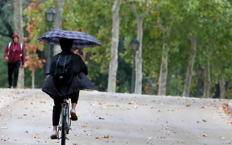 Este lunes, según las previsiones de la Aemet, se esperan en Madrid cielos cubiertos desde la madrugada hasta las 12.00, con probabilidad de tormentas, pero después esa nubosidad más densa bajará a lo largo de la tarde y llegará a la ciudad una lluvia fina. Se prevén también rachas de viento de entre 35 y 45 kilómetros por hora.