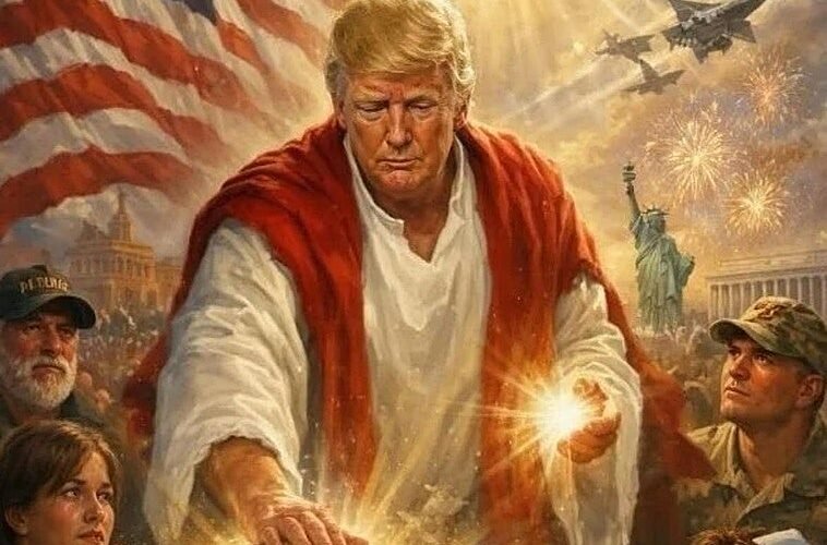 El archivo visual, que ya no aparece en el perfil de Trump en Truth Social, era una imagen del republicano simulando ser Jesucristo curando una persona enferma y rodeado de personal militar, una enfermera, una mujer rezando y varios edificios simbólicos como el Capitolio o la Estatua de la Libertad con fuegos artificiales y figuras en el cielo cubiertas por un halo de luz celestial. También sale representado el águila calva, un emblema de la nación desde 1782, que aparece en escudos oficiales, monedas, billetes y en el Gran Sello del presidente.