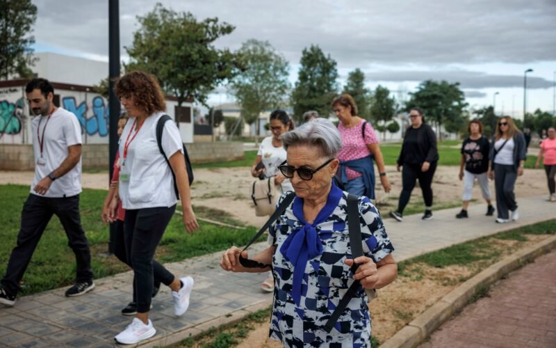 Junto a Iris caminan Macarena y Amparo, hermanas. La primera, de 55 años, se ha autoprohibido estos días ver vídeos de la dana. La segunda, de 60, perdió todos sus enseres, fotos y recuerdos. El aniversario, afirman, “lo remueve todo”. Concha, de 67 años, participa en la caminata con su marido Jesús. “Nuestra hija de 33 años”, recuerda, emocionándose, “iba conduciendo esa noche… Fueron unas horas terribles». Les contó por teléfono que no podía pasar con el coche, su padre salió de madrugada a buscarla, pero no supieron de ella hasta las siete de la mañana del día siguiente. El vehículo lo encontraron estampado en la rambleta que separa Catarroja del vecino municipio de Albal. Afortunadamente, ella había logrado escapar. Juan Manuel, de 75 años, y Josefa, de 73, también comparten su experiencia. “Estuve muy activa los primeros meses”, relata ella, “pero a los seis me vine abajo. Y mi marido, que nunca había tomado antidepresivos, ahora los toma. La gente quiere seguir adelante pero no es fácil”.