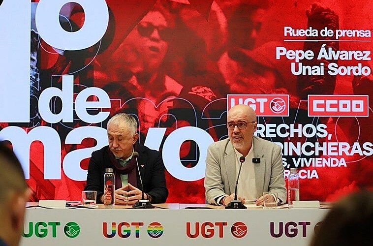 Los líderes sindicales de UGT y Comisiones Obreras (CC.OO.) se han adentrado de lleno en la contienda electoral andaluza al apuntar que no quieren oír hablar de rebajas de impuestos, como las que han aprobado la mayor parte de las comunidades autónomas incluida Andalucía, … porque esa tendencia supone una «desprotección» de los trabajadores al ver mermados los servicios públicos sanitarios, sociales o educativos. Esa es la exigencia que han planteado Pepe Álvarez y Unai Sordo en la presentación de los actos del Primero de Mayo, jornada en la que exigirán la subida de salarios dentro de la negociación colectiva con la patronal, el ‘no a la guerra’ como la de Irán o su defensa de la regularización de inmigrantes que acaba de iniciar el Gobierno.